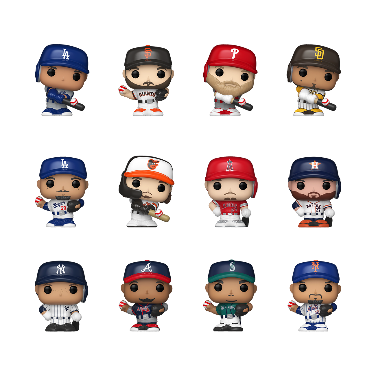 The world of POP! is getting bigger-and smaller-with Bitty POP! collectibles! Expand your MLB collection with this assortment of Bitty POP! figures in baseball-shaped packaging! Each Bitty POP! comes in mystery packaging and includes one collectible figure. Who will you find? There’s Bitty POP! Shohei Ohtani of the Los Angeles Dodgers (1/12), Bitty POP! Justin Verlander of the San Francisco Giants (1/12), Bitty POP! Bryce Harper of the Philadelphia Phillies (1/12), Bitty POP! Luis Arráez of the San Diego Padres (1/12), Bitty POP! Mookie Betts of the Los Angeles Dodgers (1/12), Bitty POP! Gunnar Henderson of the Baltimore Orioles (1/12), Bitty POP! Mike Trout of the Los Angeles Angels (1/12), Bitty POP! Jose Altuve of the Houston Astros (1/12), Bitty POP! Aaron Judge of the New York Yankees (1/12), Bitty POP! Ronald Acuña Jr. of the Atlanta Braves (1/12), Bitty POP! Julio Rodríguez of the Seattle Mariners (1/12), and Bitty POP! Francisco Lindor of the New York Mets (1/12).